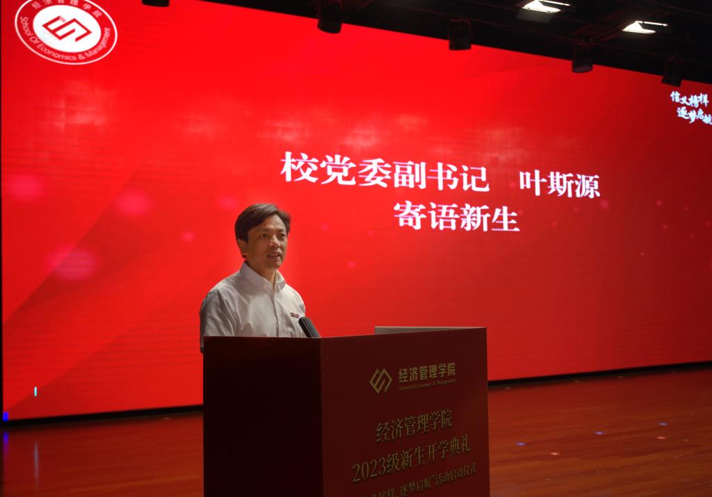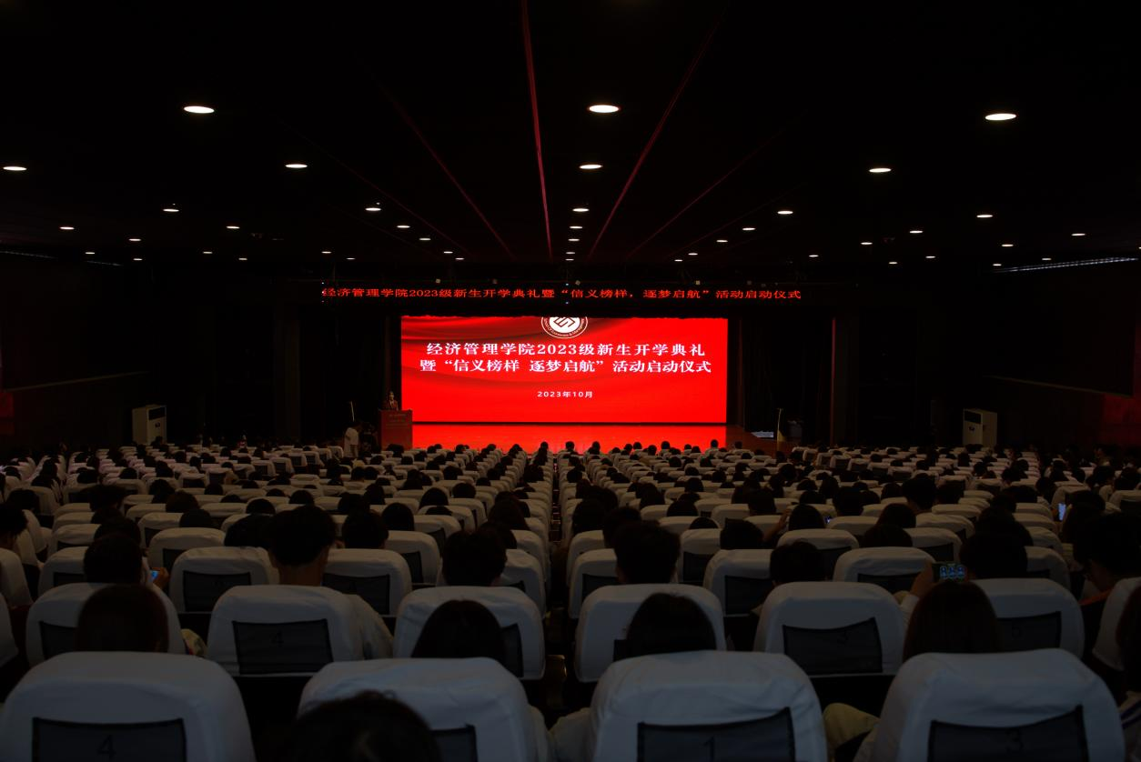 10月16日下午,hbs04红宝石线路2023级新生开学典礼暨“信义榜样、逐梦启航”启动仪式在丹溪文化厅举行。校党委副书记叶斯源、中国建设银行义乌分行副行长徐杨义、学院领导班子成员、专业负责人、新生班主任、教师代表以及学院2023级全体新生参加。