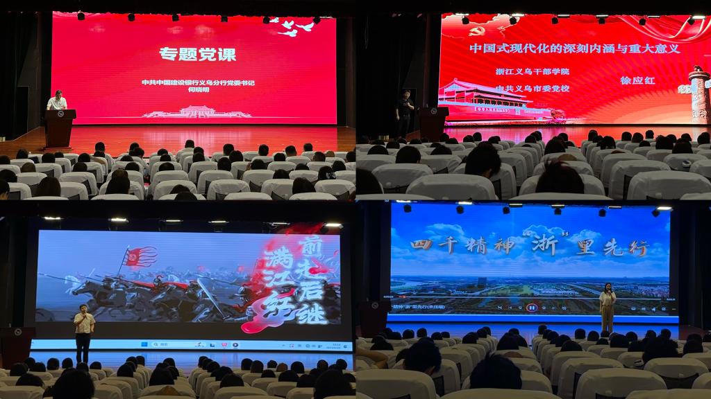 何晓明作专题党课。他从不以山海为远、非学无以广才、共拓学习边界三个方面讲述如何做好使命担当。他强调,银行要跳出金融做金融,与高校共建金融教育新模式,探索新金融回归初心和本源的新路径。他还指出,全体党员还要坚定理想信念,强化担当作为,提高专业化水平,始终保持奋发有为的精神状态和负重拼搏的昂扬斗志,开创各项工作高质量发展的新局面。